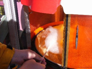 残念ながら、わたがし自販機はDVD撮影直後の2008年2月、ポップコーン自販機はDVD撮影の前に撤去されてしまいました。 tienさんからの情報です。ありがとうございます。 筑波山の、ロープウエー乗り場のそばにある ドライブイン(レストハウス兼お土産屋?)「ニュー三井谷」に、 可動しているわた菓子自販機と、ポップコーン自販機を発見しました。 思わず店の人に「動いてますか?」と聞いてしまいました。 ポップコーンは、そんなにアツアツというわけではないですが、 ちゃんと美味しかったです。もう少し塩味が欲しかったかな・・・。 わた菓子は、ホントすごい勢いで出てきますね・・・。 扉を閉めるだけなのに、服にまとわりつきそうで大変でした。 なお、筑波山のロープウエー情報はこちらです。 つくばエクスプレス終点のつくば駅より、シャトルバスが800円前後で 出ているようです。 ここの上に「筑波ガマランド」というのがあります。 ちょっとB級で手作りな感じがけっこう笑えます・・・。 私のblogでも写真を掲載していますので、ご参考に。 埼玉県長瀞町の宝登山でも見かけたわたがし自販機!ここでも現役で稼動してるとは! やっぱロープウエー乗り場にはわたがしでしょ、って、あまり関係ないと思うのだが。 ポップコーンは足立区のコインランドリーほしのに売ってるやつと似てる、120円は高いな、観光地値上げか。 自販機の製造表示がいい、100円硬貨に「だま」とふってあるし、 以外も「ほか」って読ませるなよー、子供が変な風に覚えてしまうかも、教育に良くないけど中途半端に仮名ふっておくのも良くない。 ついでに御使用できませんの方も「つかえません」ってつけとこうよー。 tienさん、この面白い表示も撮っていただいてさんきゅです。 |