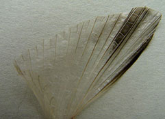 なぜ、スズムシの「後ろばね」は抜けるの? 昆虫には4枚の「はね」があるのに、 スズムシは地上を歩いて生活しています。 スズムシは、空中を飛ぶのではなく、 「後ろばね」は、ふつう羽化後5〜7日ほどで抜けます。 |