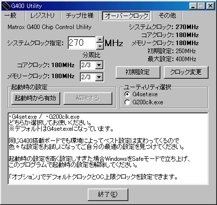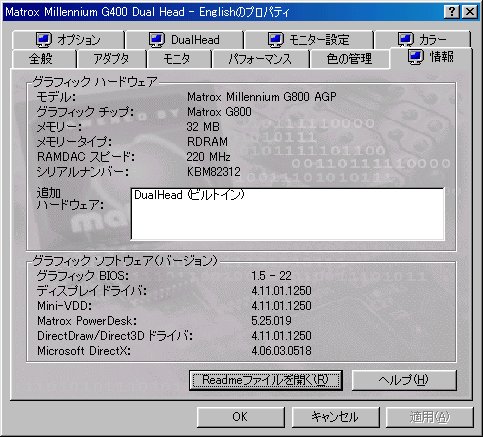 Utilityを製作するということもあるのですが、現在どこまでG400のW2kドライバが完成しているか興味があるからです。