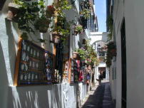 コルドバは、そこら中が白い壁に色鮮やかな花で飾られたパティオ(中庭)や小路だらけです。そんな小路が細く曲がりくねっているため、ちょっと歩くとすぐ道に迷います。最初はそれにめげず必死で道を覚えようとがんばりましたが、そのうち道に迷うことに慣れると、道がわからなくてあたり前と感じられるようになりました。とりあえず適当に歩いているうちにメスキータが現れます。そこまで来ればホテルには戻れます。結局最後まで「道を歩けば必ず迷う」の繰り返しでしたが、迷っても動じないという精神が身に付き、その後の旅でもこの精神が役にたったような気がしないでもないような。