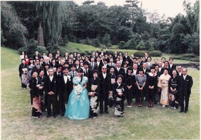 25年前と同じアングルで写真を撮って頂いた。左の出席者の内、もう15人以上の方が物故者となっている、僕も白髪で坊主になり、あっという間の銀婚式だ。