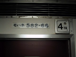 乗車したのは、モハネ582−66でした。 モ・・・電動車(モーターが付いている駆動車) 582は583系2両ユニットの偶数車なので、1引いてます。 |