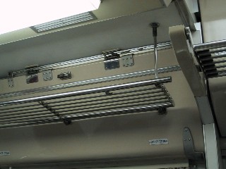 さて、なんでしょう。みなさんもお解かりのとおり、ドア開閉器です。車掌室でなくて、なんでこんな中間車両に付いているのでしょうか。 |