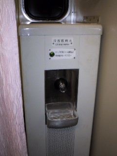窓はどうなっているかというと、2重窓で、そのガラスの間になんと、ブラインドが収納されています。 写真では見えませんが、くるくると取っ手が付いています。おや、壁に収納ボックスが。とか、思いがちですが、あそこは肘掛になっています。車内空間を最大限に利用するための工夫ですね。 |