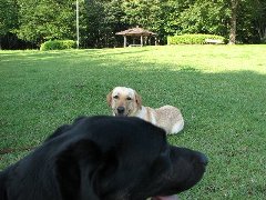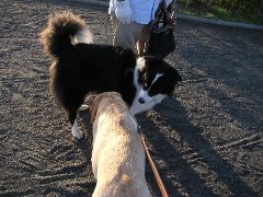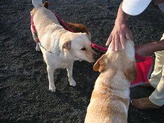 | 2007年9月2日。十兵衛一家に加わった小雛さん。 前のお家でも、訓練所でも、大切に育てられたお姫様。 一方、4年半も一人っ子満喫で育った甘ったれな十兵衛。 これからどんな生活になるのでしょう?? 不安半分。期待半分。 手探りの多頭飼い生活のはじまり、はじまり〜〜〜〜!! みなさん。ご指導ご鞭撻のほど、よろしくお願いいたします〜〜(*^。^*) |
