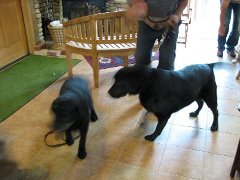 ぜひぜひ、今回の言いだしっぺである スプラッシードッグのマスター様に 小雛を紹介したかったのです。 看板犬たちにかわるがわるチェックされ 終始緊張気味の小雛さん。 ちょっと疲れたかな? 夜は実家で一泊。 じいちゃん、ばあちゃんにご挨拶。 小雛さん、尻尾ふりふりうれしそう。 |