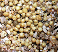 カブトガニの卵 卵の大きさは、直径 約3mm 砂の中の酸素は、卵を酸欠から守ります |