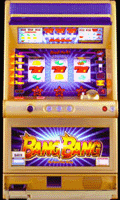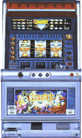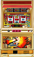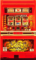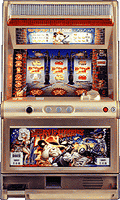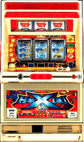 大都技研 はじめSとして発売したが途中で謎の販売中止・・・新たにKとして登場。リプレイ持ち越し機能を搭載したAタイプ大量獲得マシン。簡単に纏めるとバンバンの後継機。ちょっと変わってるのは「第4のボタン」とか言って予告音時、3リール停止後、光のルーレットが回り出したら右上の鍵を狙って「MAX BET」ボタンにて光りを目押し...鍵の所で止まればめでたくボーナス確定...と言う変な仕様だ。 |