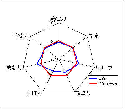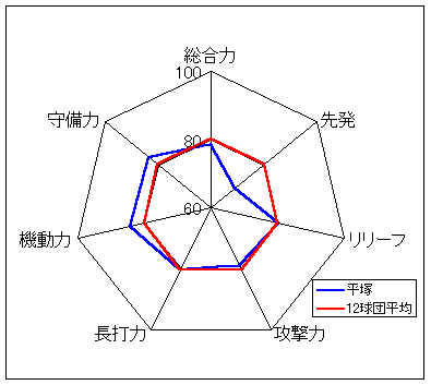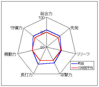 コメント:非常にバランスが良く、投手力、打力、守備力いずれも高いレベルをもつ。
