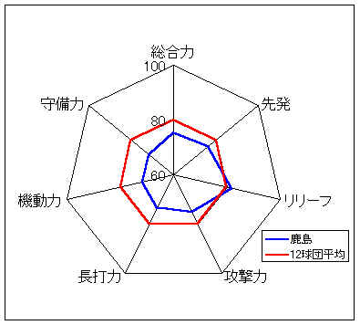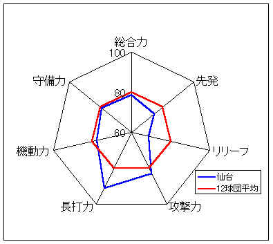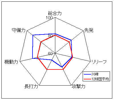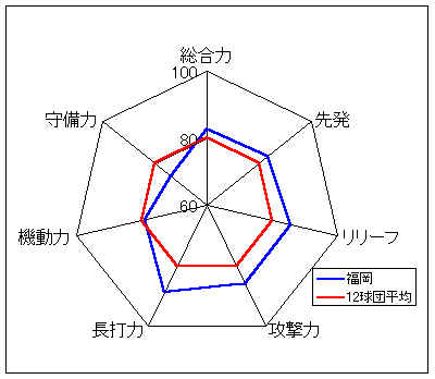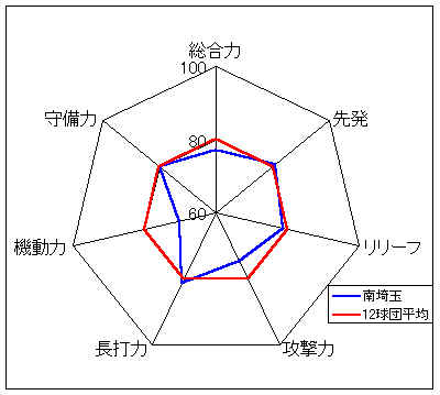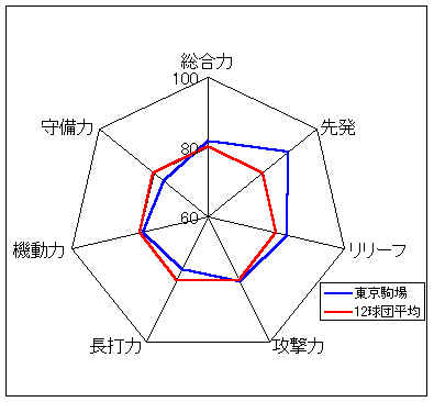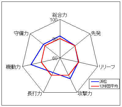 コメント:打線はやや非力だが、守備力がすばらしい。攻撃では、高い機動力を生かしたい。