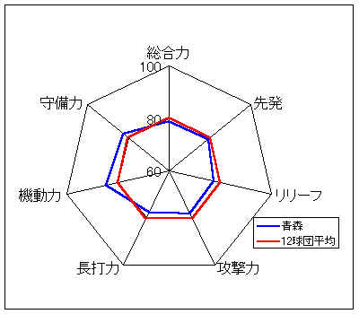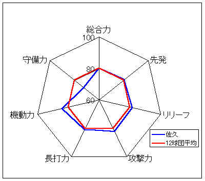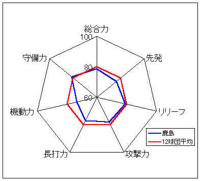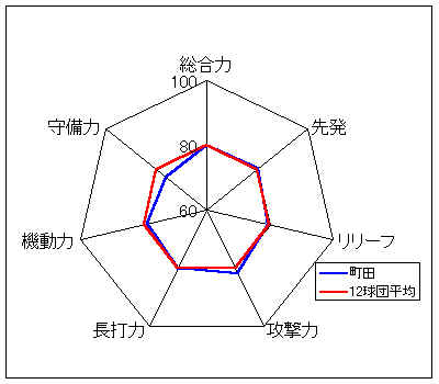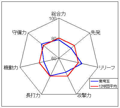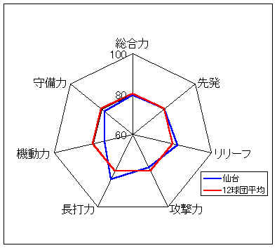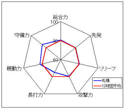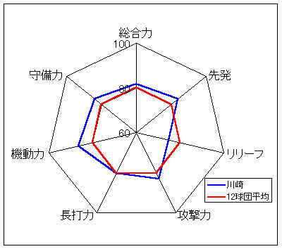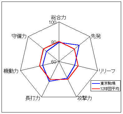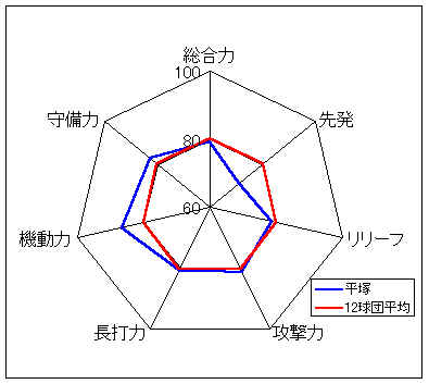 コメント:どの項目もほぼ12球団平均という結果になった。大崩れはしないはず。