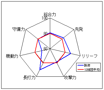 コメント:さらにパワーアップした打線は圧巻。特に長距離砲が並ぶ打線は他チームの恐怖の的。