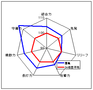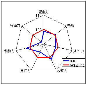 防府が本命。投手力・攻撃力・守備力どれをとっても隙はない。昨年度リーグ優勝の西瀬戸は機動力野球が機能すれば十分チャンスはある。三木はやや戦力ダウンした印象を受けるが、もちろん優勝候補の一つ。自慢の先発3本柱次第か。北海は投手力が充実してきた。攻撃力も他チームにそれほどひけをとらないが、問題は守備力。津も悪くない。まずはAクラス定着を目指したい。オーナー不在の鹿児島は厳しい戦いとなるだろう。