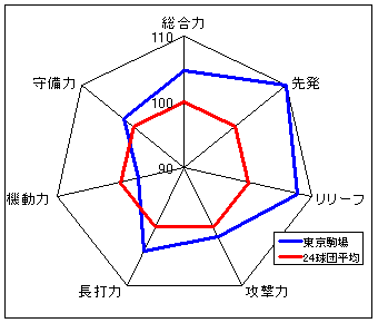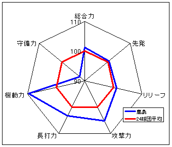 チームバランスに優れている川崎が本命か。今年度面白そうなのが鹿島。長打力も機動力もある攻撃陣に期待したい。長打力を全面に出す南埼玉は、やや弱い投手陣と守備力がどこまで踏ん張れるかが問題。東海は力をつけてきた。札幌は5位としたが、上位との差はそれほどではない。浜松は戦力ダウンで、ややこぢんまりした印象を受ける。