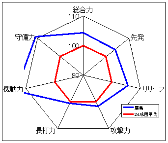 走・攻・守ともに他チームを圧倒する防府が大本命。攻撃力が若干落ちた感があるが、投手陣の補強はますます進み、ブルジョワ投手陣はしばらく健在だろう。防府に迫れる力をもっているのは三木と北海か。三木は攻撃力に厚みを増した。先発投手陣がやや弱いが、リーグ1の守備力がそれをカバーする。北海は投手力・攻撃力は防府に対抗できる力をつけてきたが、やはり弱点は守備力。投手陣の足を引っ張らなければ、それなりの戦いは出来るはず。津は大化けする可能性がある。過去Sリーグを機動力野球で制覇した北海、西瀬戸以上に俊足の選手が揃った。型にはまれば、上位進出も十分考えられる。西瀬戸はまだチームの方針が見えてこない。ここ数年は我慢の年になりそう。鳥取はわずかながらチーム力は年々アップしてきている。今後に期待したい。