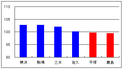 | 4 | 横浜 | 102.7 | 103.6 | 101.8 | 102.5 | B | 2 |
