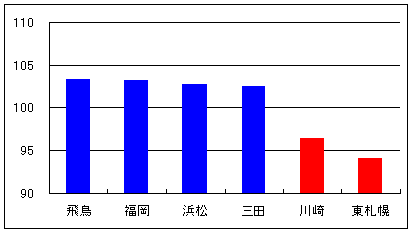 | 5 | 浜松 | 102.7 | 100.8 | 104.2 | 103.7 | P | 5 |