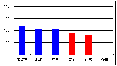 | 10 | 南埼玉 | 101.9 | 99.5 | 105.9 | 101.1 | S | 13 |