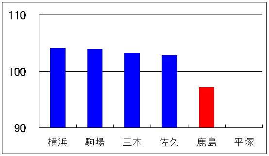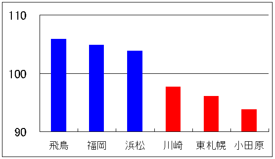 | 7 | 浜松 | 103.8 | 103.9 | 100.5 | 107.1 | P | 5 | 5 | 6 |