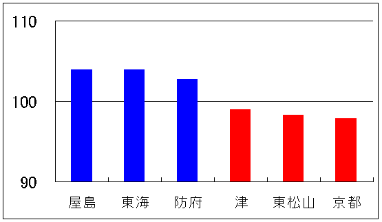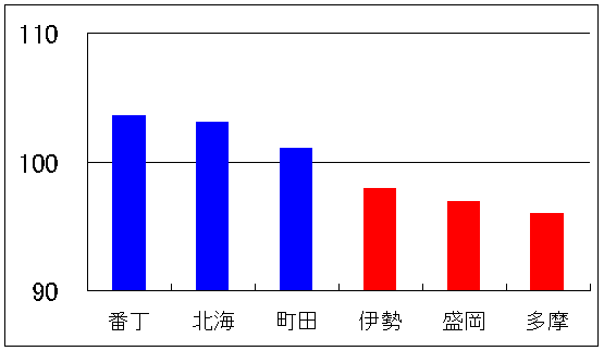 | 6 | 東海 | 103.9 | 103.8 | 106.4 | 101.4 | M | 14 | 18 | 7 |