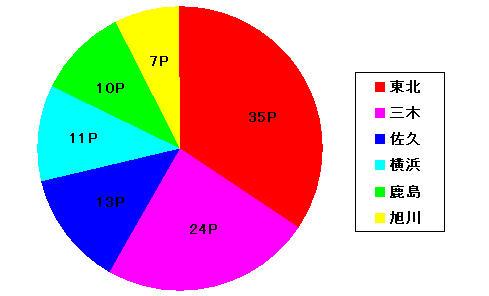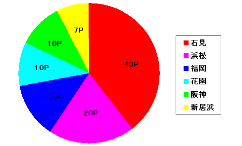 今回より戦力分析結果の表示方法をポイント制による円グラフで示してみました。