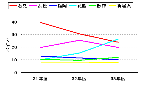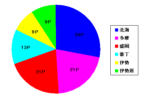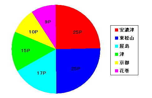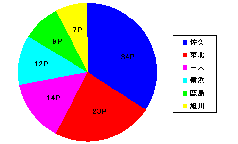 安濃津と東松山が全くの同ポイント。敢えて順位予想をするならば、実績で安濃津が1位か。注目は戦力大幅アップの屋島。経験は十分なだけに、今シーズン台風の目となる可能性あり。津も安定した補強を続けており、Aクラス復帰も近そう。京都は久々の最下位脱出なるか。花巻は今後に期待。