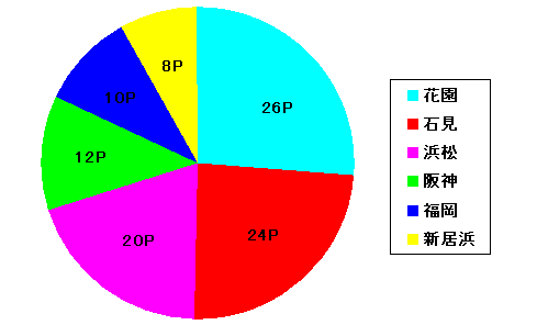 戦力的には3強3弱の2グループに分けられそう。注目は花園。石見、浜松の戦力ダウンを尻目に大幅アップを果たし、優勝候補の一番手にとなった。ただし、上位3チームの戦力は拮抗。最後はオーナーの手腕に掛かってきそう。残り3チームでは阪神がわずかながらではあるが、確実に戦力補強が進んでいる。Aクラス入りも近いうちに達成できそう。一方、福岡は戦力が年々落ちる傾向にある。新居浜との戦力も縮まってきた。