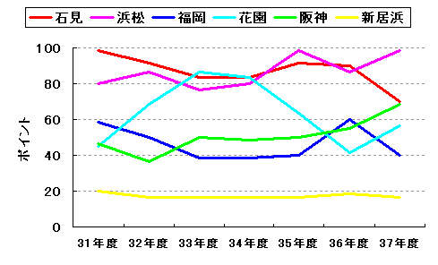 今シーズンも磐石の戦力を整えた浜松を優勝候補の筆頭としたい。毎シーズン拮抗した戦力をみせてきた石見の戦力ダウンがやや大きく、浜松独走の可能性もあるかもしれない。確実に力をつけている阪神の念願のAクラス入りは十分達成できそう。近い将来には優勝争いにも加われるだろう。花園はAクラスとBクラスを行ったり来たりとやや安定感に欠く戦いが続いている。主力選手の年齢がやや高いのも少し気になる。福岡は戦力分析では下位に甘んじているが、実際はもう少し力はあるような気がする。一昨シーズン、昨シーズンのような戦いを続けたい。新居浜は残念ながら今シーズンも最下位になる確率は高そうだ。