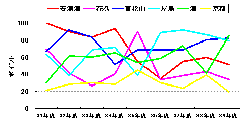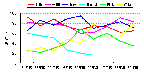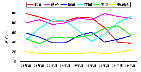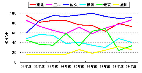 3強3弱。優勝争いの軸は今シーズンも佐久と三木。この2チームに東北が加わった3チームから優勝チームは決まることになりそうだ。佐久は一時期の力はみられないが、相変わらず安定した戦力は揃えている。三木は(三木としては)低迷期を完全に脱した感がある。戦力分析上ももちろん優勝圏内。Aクラスは確保しつつもリーグ優勝からは遠ざかっている東北も戦力的には十分優勝を狙えるものを持っている。上位3チームからはやや引き離された感じの残り3チームだが、いずれのチームも特色あるチーム作りをしており、一方的に引き離されるようなことはないだろう。