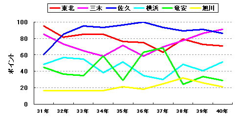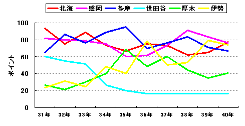4強1中1弱。昨シーズンの戦力分析でも「例年にも増して、上位陣の戦力が拮抗している」と書いたが、今シーズンはそれ以上の拮抗を見せる。特に北海、盛岡、伊勢の3チームに関しては、全く同戦力と言って過言ではないだろう。もちろん多摩も優勝候補に挙げられる。その中から1位を敢えて上げるならば北海だろう。前評判は高くないようだが、ウィークポイントの投手力がアップし、十分他の3チームと渡り合える戦力はある。もちろん、盛岡の打力、伊勢の投手力、多摩の機動力を中心とした攻撃力はすばらしい。どこが優勝しても全く不思議はない。厚木の5位、世田谷の6位は濃厚と思われるが、予想を覆すような戦いを期待したい。