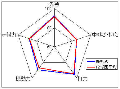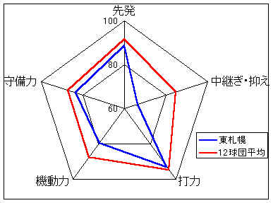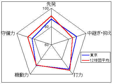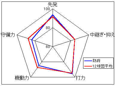 0年度(オープン戦)、4年度と最下位が続いているが、オフの選手補強によりチーム力は確実にアップしている。まだやや非力の感があるが、先発陣の成績次第では上位進出も十分ありうる。