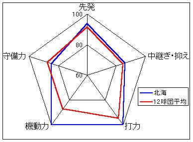 ここ2年間、ドラフト以外での選手補強を行なっていないため、チーム力の低下は否めない。特に外国人選手がいないのは、他のチームが力をつけてきているだけに、今後の戦いは厳しくなるのでは。とはいえ、個々の選手は能力の高いものをもっており、スタメン選出方法や投手の配置を検討すれば、上位は十分狙えるチームであろう。