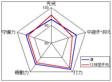 投手力がやや弱いが、堅実な守備でチームを支える。野手は若い選手が多く、将来性があるチームだろう。新オーナーの采配に期待。
